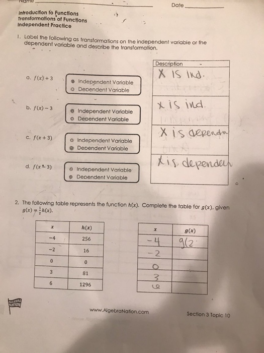Solved Date Introduction To Functions Transformations Of Chegg Com